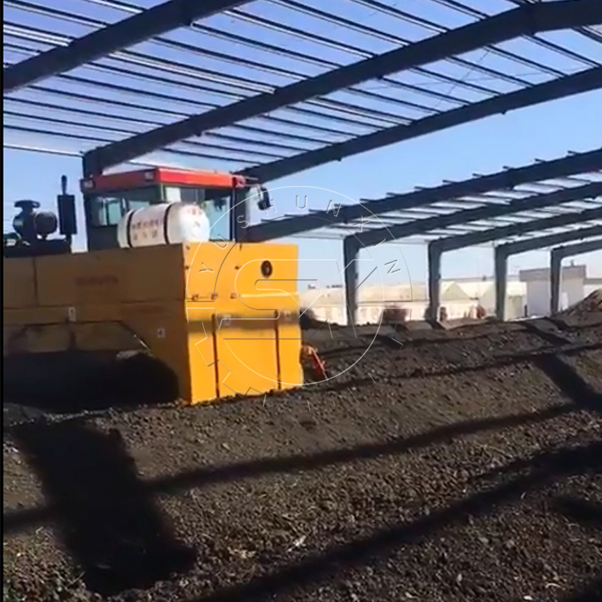 windrow composting machine in an organic fertilizer making plant